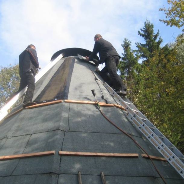 Ob ein defekter Wandanschluss, eine tropfende Dachrinne oder eine andere Undichtigkeit – sämtliche Reparaturarbeiten am Dach werden von unseren erfahrenen Dachdeckern ausgeführt.